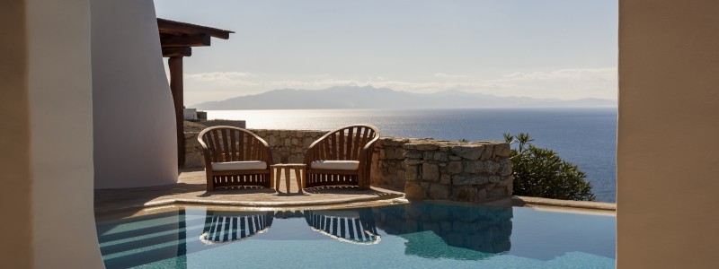 Villa Hera is a 3 bedroom seaview luxury villa in Mykonos. The view from the villa is majestic overlooking the islands of Rhenea and Delos. Part of Luxury Resort with various private Villas, it has all the luxury and comfort for its guests to enjoy.